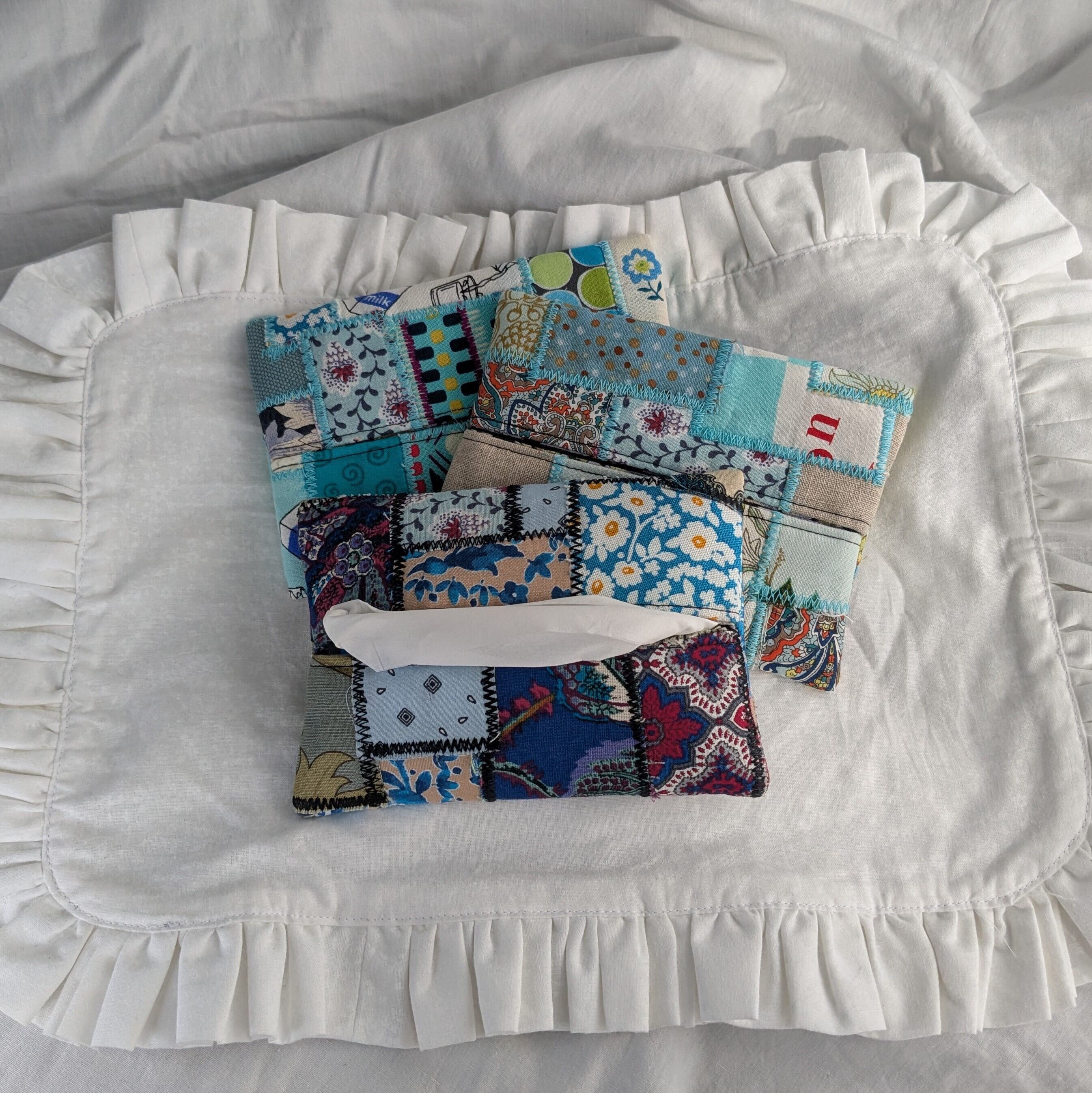 こちらのパッチワークのポケットティッシュケースは、機能性とパッチワークのデザインが融合したアイテムです。